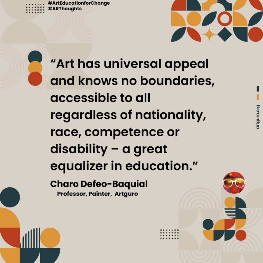 The ARTguro Biennial was first established in 2021 during the height of the covid-19 pandemic in order to inspire art educators despite their hardship and challenges. The exhibition featured art teachers from all over the Philippines and has since grown into a regular biennial attracting educators from all sectors and backgrounds to celebrate their passion for teaching and the arts. The biennial has featured over 100 art teachers and artist educators from different parts of the country throughout the years.